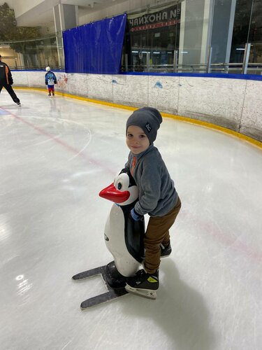 Отличное место! Очень недорого, комфортно, парковка бесплатно 3 часа, можно успеть еще и перекусить потом. Были в спортивном лагере на теннисе и было занятие с тренером на катке у всей группы. Просто отпад! Народу немного было, тренер от Бога. Служители катка помогали детям шнуроваться и в целом были добродушны и заботливы.